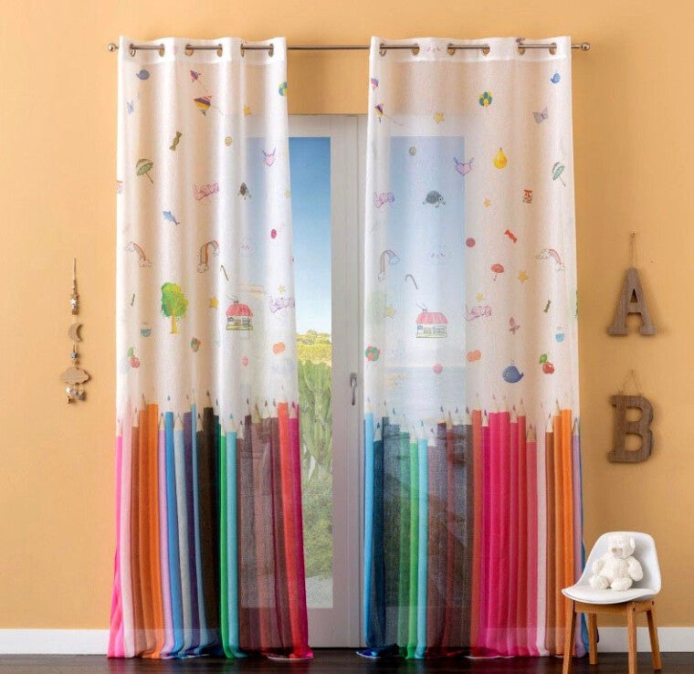 Tenda con anelli Baby disegno Pencil. Disponibile nella misura 140x280 cm, 1 pannello per confezione.