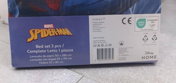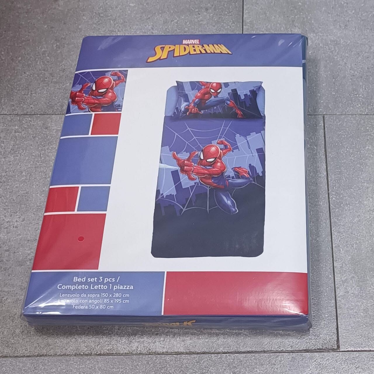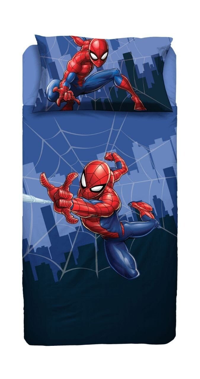 Spiderman, Lenzuolo Letto Singolo, Completo Letto Singolo Disney, Lenzuolo Sopra, Lenzuolo Con Angoli, Federa, Blu, Marvel, Disney, 100% Cotone, Prodotto Ufficiale