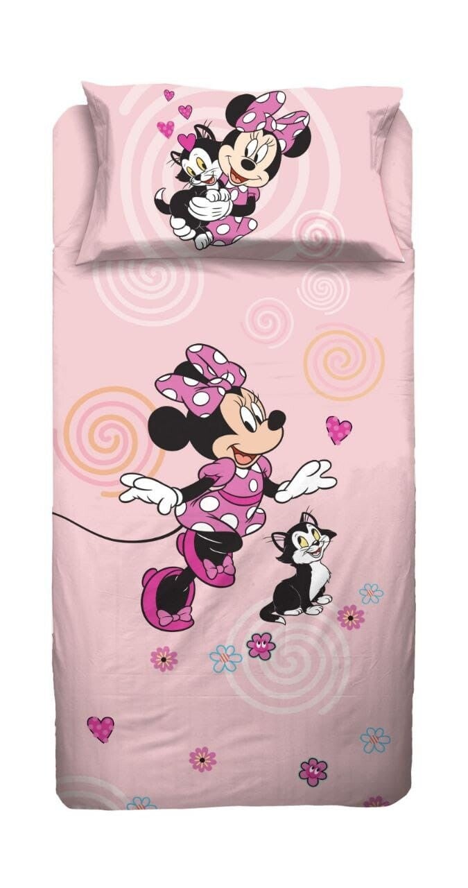 Minnie, Lenzuolo Letto Singolo, Completo Letto Singolo Disney, Lenzuolo Sopra, Lenzuolo Con Angoli, Federa, Rosa, Disney, 100% Cotone, Prodotto Ufficiale