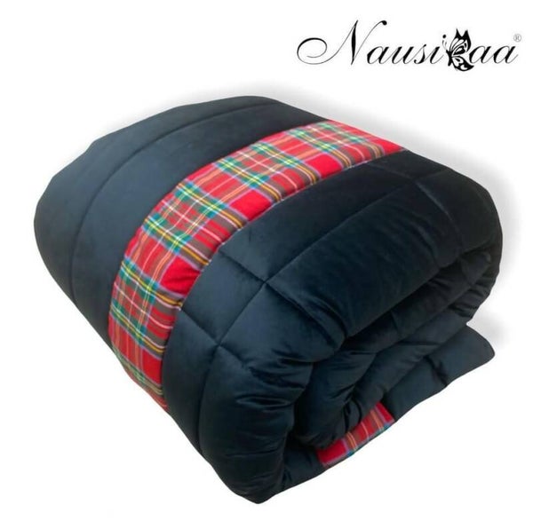 TRAPUNTA IN MORBIDISSIMO VELLUTO T.UNITA CON DISEGNO PIAZZATO CON BORDO IN TINTO FILO SCOZZESE