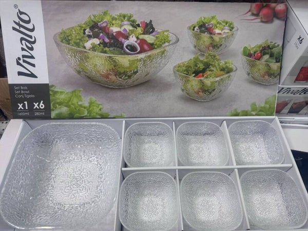 Set Insalatiera Vivalto in Vetro – 6 Ciotole + 1 Insalatiera Grande
