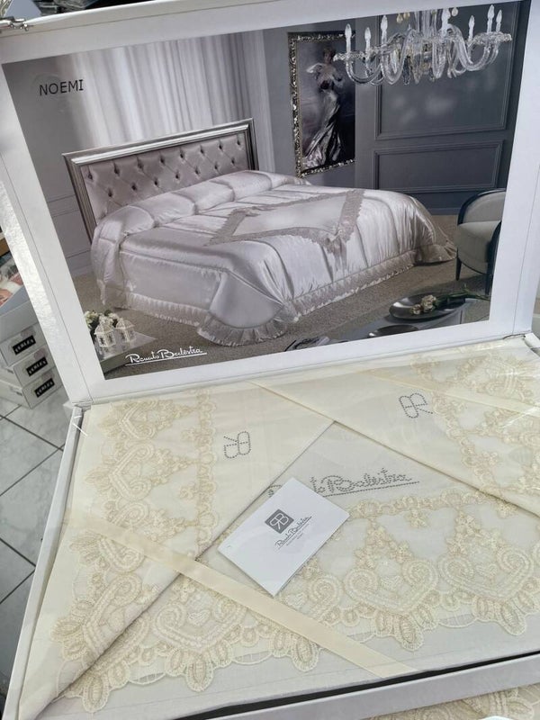 Completo Letto Noemi Renato Balestra | Matrimoniale Ricamato in Raso con Pizzo e Strass