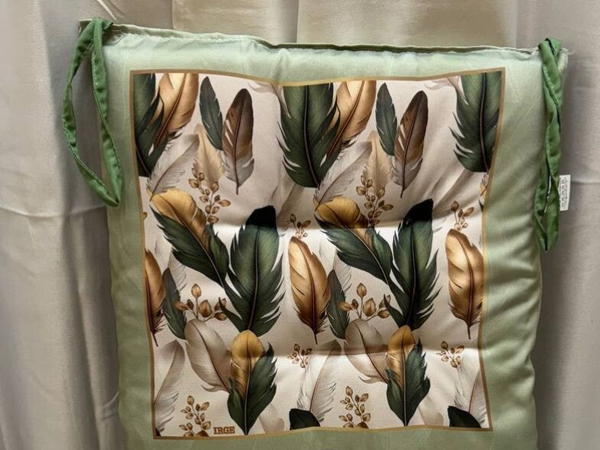 I cuscini sedia IRGE con stampa digitale sono perfetti per arredare cucina, sala da pranzo o terrazzo con eleganza. La loro imbottitura morbida, la misura maxi 50x50 cm e i pratici lacci di fissaggio garantiscono stabilità e comodità su qualsiasi sedia.