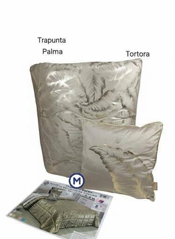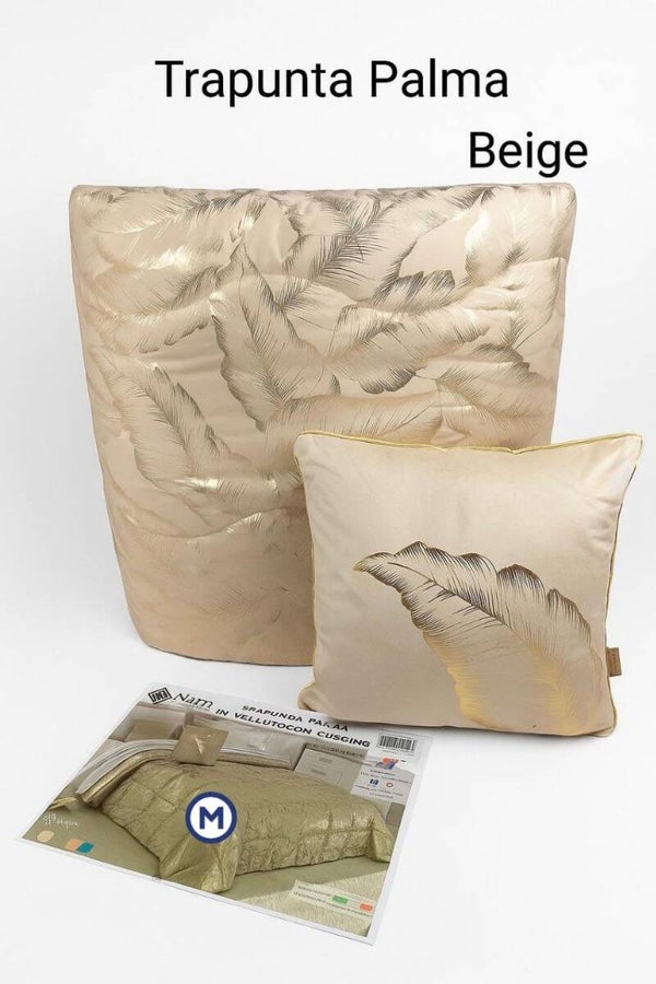 Trapunta Matrimoniale Maxi in Velluto con Decorazione Palma Oro + Cuscino – Made in Italy
