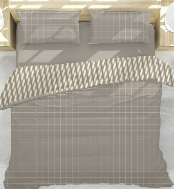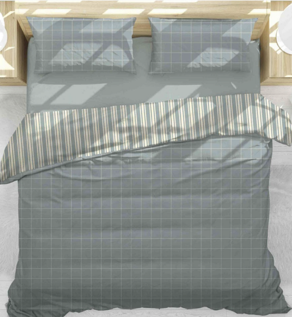 Disponibile nella misura matrimoniale, il set comprende un sacco copripiumino 255x205 cm con patella di 40 cm e 2 federe 52x82 cm con patella di 15 cm.