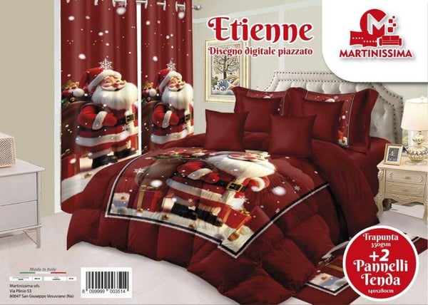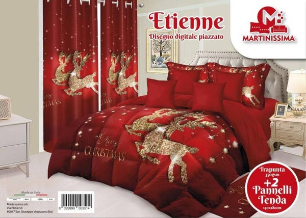 Trapunta matrimoniale natalizia in stampa digitale con tende coordinate – Martinissima Made in Italy