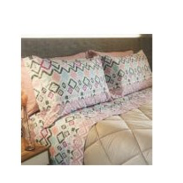 - 2 Piazze: Lenzuolo sotto con angoli 175x200 + angolo elasticizzato; lenzuolo piano 250x290 cm; 2 federe 52x82 cm con due volani.