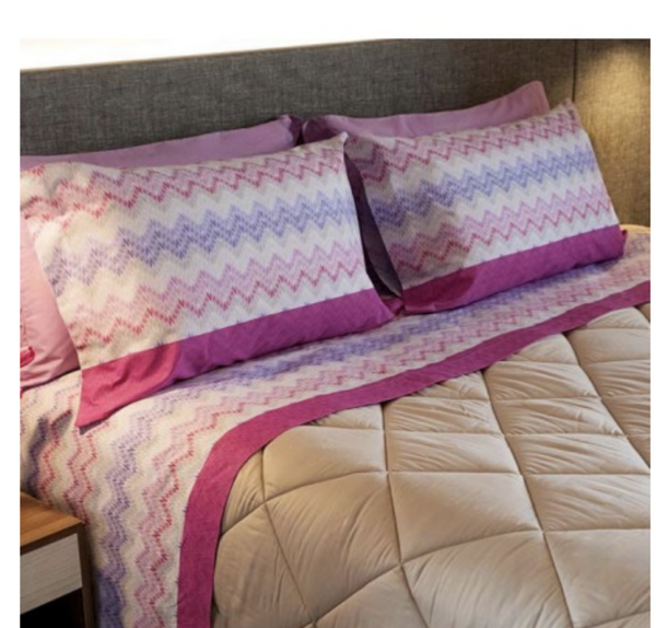 Completo letto 100% cotone Tramonti disegno Zara, disponibile nella misura matrimoniale in più colori.